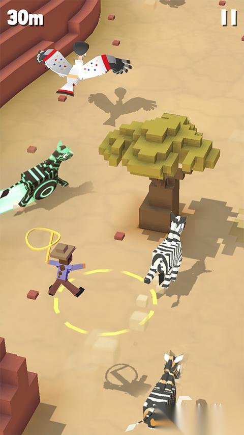 结合动物的元素设计了一款极其有趣的跑酷游戏,在利用这些动物跑酷的时候一定要先把他们驯服,驯服后的动物们会很听话的奔跑在各个场景之中。当动物驯服后,会被带入到空中动物园中进行饲养,将这些动物的等级提升后闯关时,是可以获得新技能赚取更多金币的,在主线任务推进时可以解锁丛林,侏罗纪等地图。