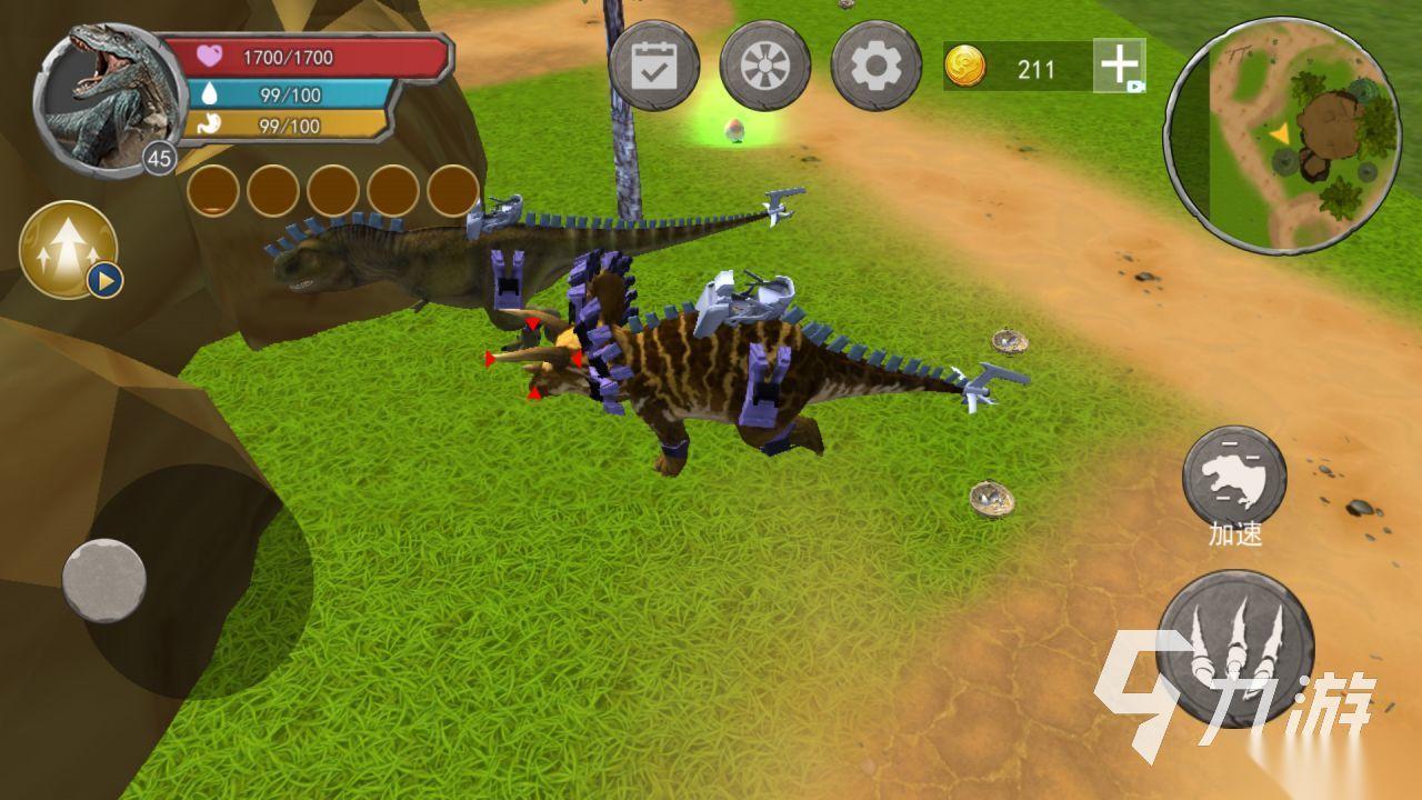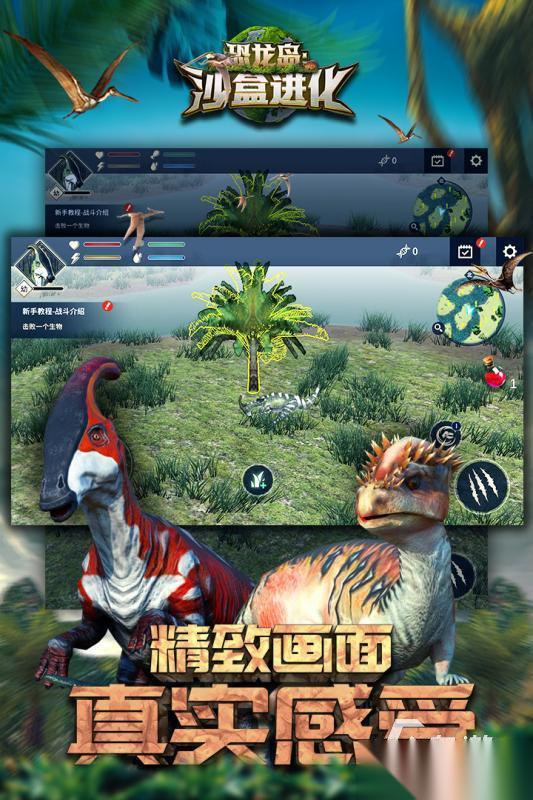非常写实地模拟恐龙进化生存的逼真游戏,岛上有许多恐龙在生存,玩家作为一只弱小恐龙要在此学会竞争。学会寻找食物,强化力量升级,提高恐龙体的等级和技能,打败其他岛上的恐龙强敌,成为岛上最强王者。3d模拟恐龙,逼真建模,模拟岛上白天黑夜光线和天气变化,打造沉浸式的恐龙生活。