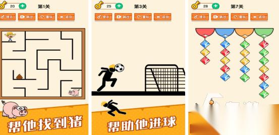 此热门的开发脑洞游戏,每个关卡具体的通关模式都是完全不同的,比如控制角色走出迷宫,拯救小猪,又或者是帮助角色在困难重重的环境当中踢进足球。每个关卡的玩法都是有所差异的,让玩家获得无限惊喜,也能够在这里享受无穷乐趣。