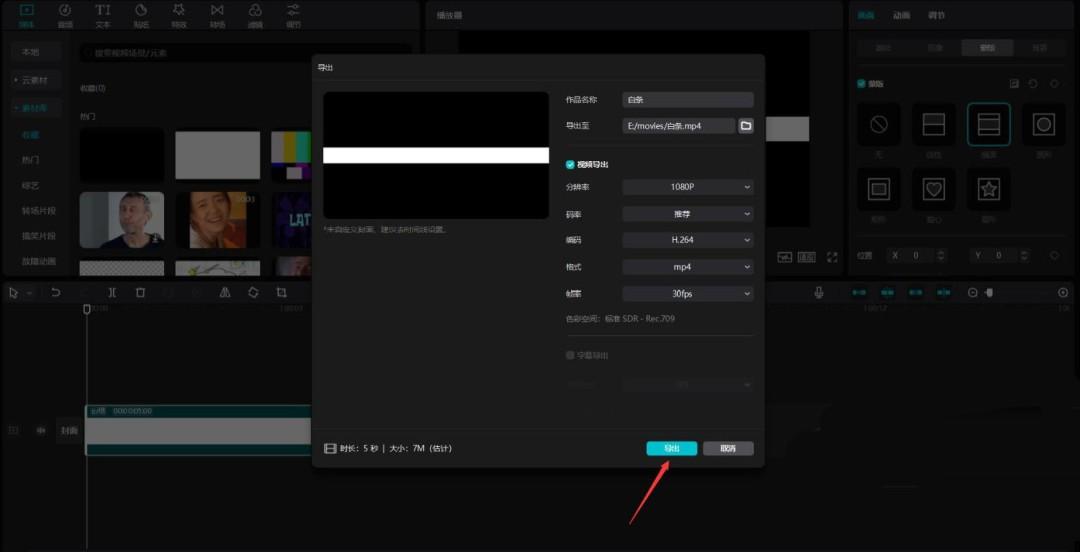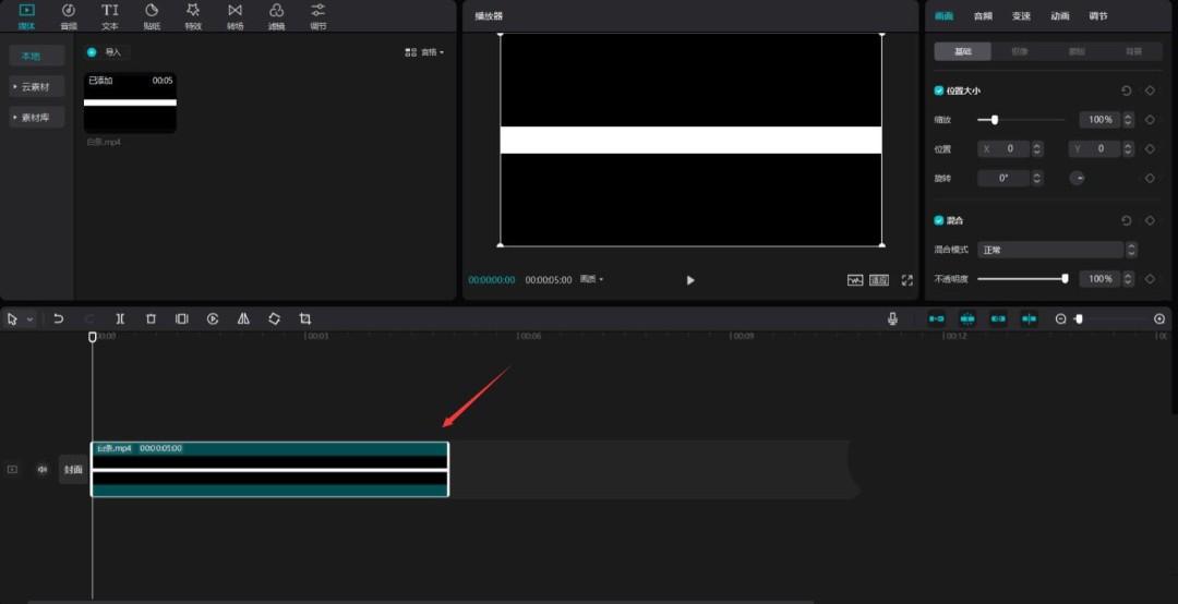 导入刚才导出的视频,将其添加到视频轨道中,见下图。