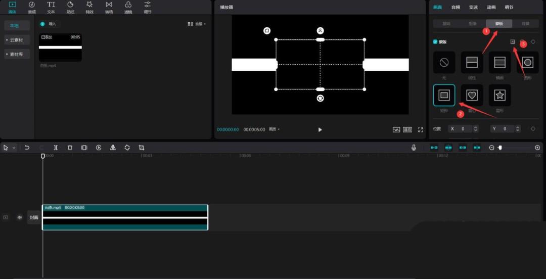 点击蒙版按钮,选择矩形蒙版,然后点击反转按钮,见下图。
