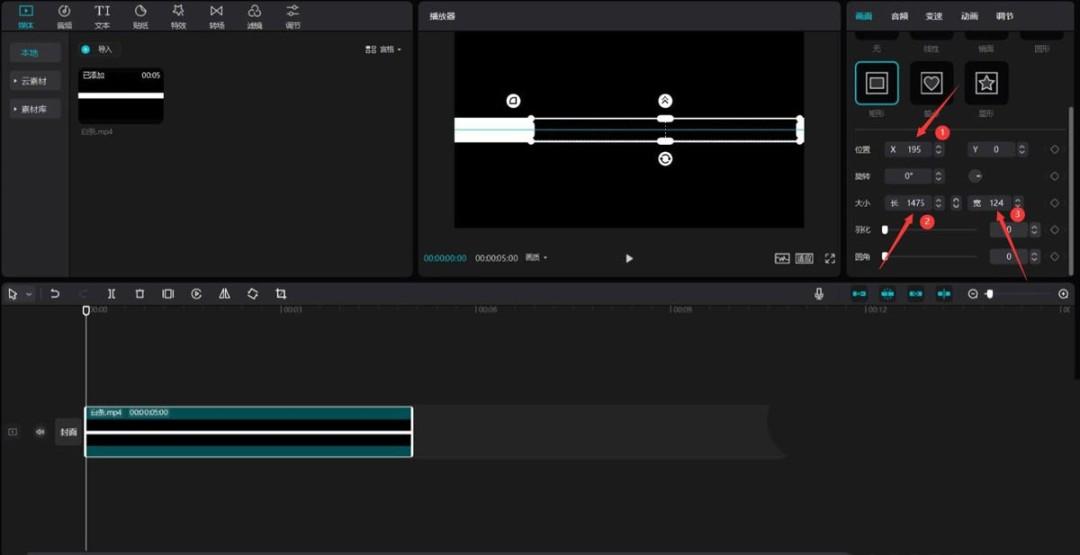 更改蒙版的X为195,长为1475,宽为124,见下图。