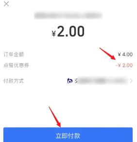 在支付界面,即可使用点餐优惠券,选择立即付款即可。