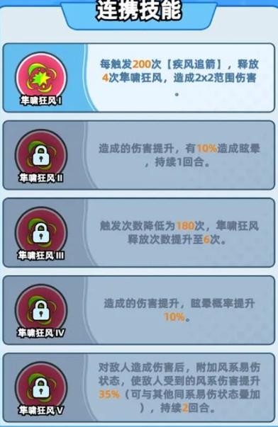 风系易伤核心:5级解锁35%风系易伤(持续2回合,可叠加),青蛇、白蛇、莱恩等风系伙伴贯穿伤害翻倍。