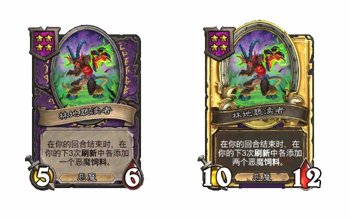 [恶魔4费小型] 获取一张林地亵渎者。酒馆中的恶魔饲料拥有+2/+2。