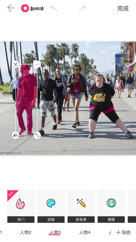 4、选好需要编辑的图片以后,系统会自动识别图片中的任务,然后点击你需要删除的路人:
