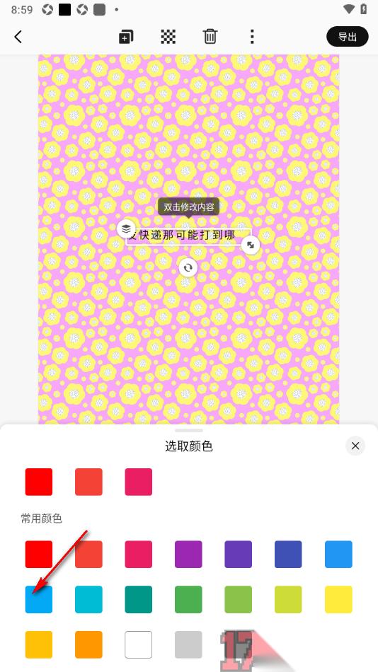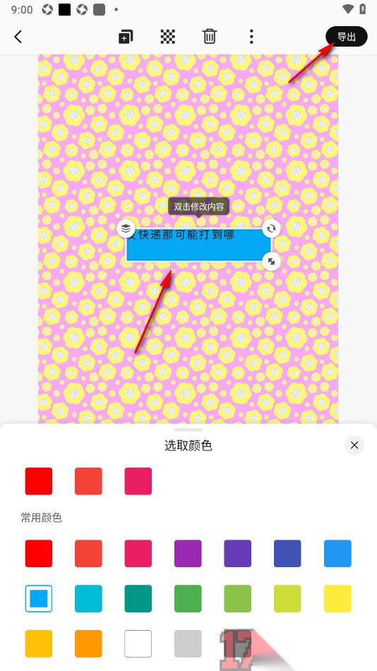 5.完成设置之后即可查看到刚刚选中的文字输入框的颜色即可有相应的变化,之后点击右侧上方的【导出】按钮即可保存。