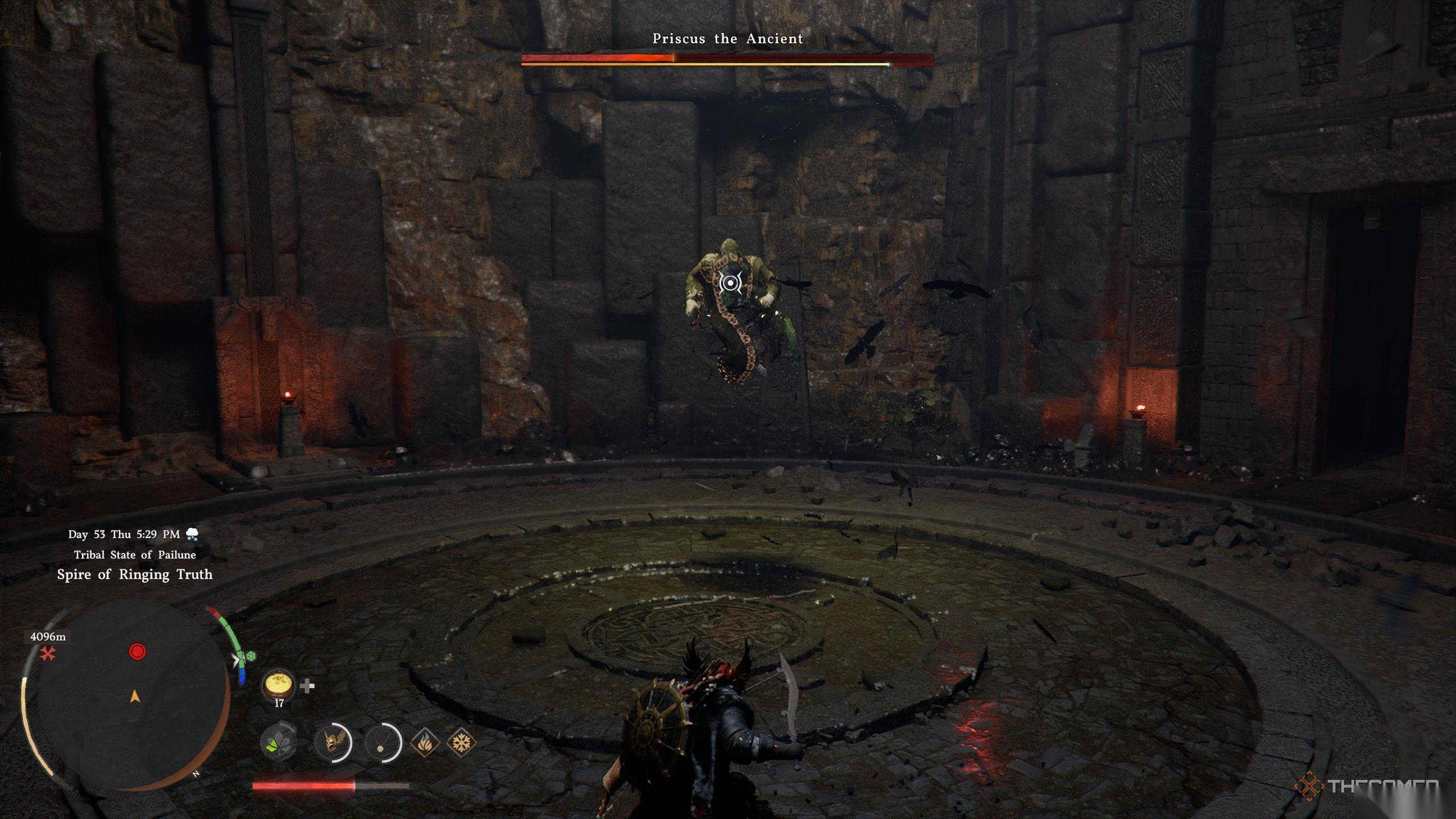 普里斯库斯还会向你俯冲,并在自己周围召唤一些黑色烟雾弹。如果他向你俯冲轰炸,躲开最初的落地冲击,然后向他翻滚以避开他制造的爆炸。这是一个很好的攻击机会,尤其是如果你还没有解锁自然陷阱的话。