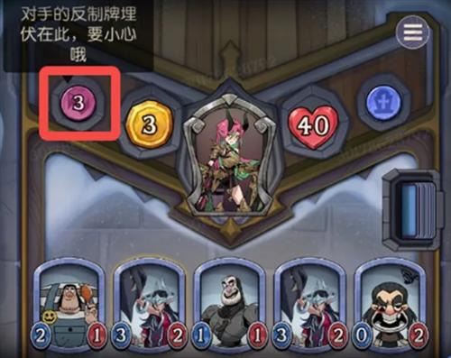 大家可以在每回合战斗界面看到敌方的阵容状况以及剩余血量,以便针对性的布置,不过要小心对手埋伏的反制牌,反制牌只能看到数量,但无法确定反制的效果,最后卡牌类型分为随从、咒术和反制,反制需要相应条件才能生效,咒术是打出后一次性生效,随从具备自己的攻击力生命值,部分会带有护盾等特殊能力。