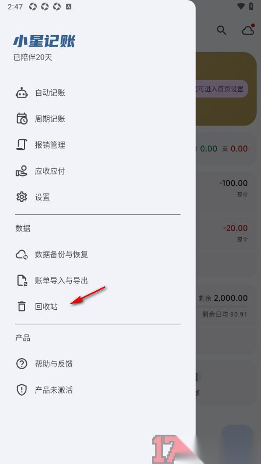 小星记账APP成为小伙伴们用来记录收支账单数据的记账神器,直接将其安装到手机上即可使用,大家可以将平时涉及到的工作账单、家庭账单等添加进来设置,后期直接使用该应用进行对账等,但是有些时候会不小心将记录的账单明细账单了,那么该如何将其重新恢复呢,很多用户对该操作表示十分的疑惑,其实直接打开页面左侧边栏窗口,找到回收站功能点击打开,即可进入到页面中找到被删除的账单明细,将其点击即可重新恢复操作,不过该功能需要开通会员才能解锁使用,除此之外还可以设置数据备份和同步等操作。
