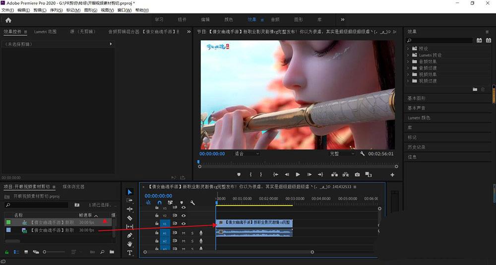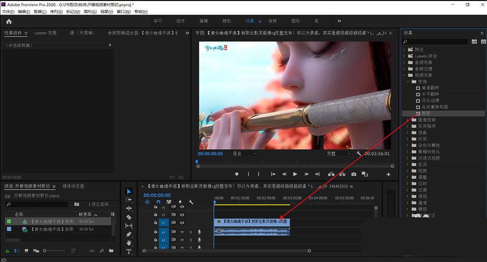 5、将剪切拖到视频上面。