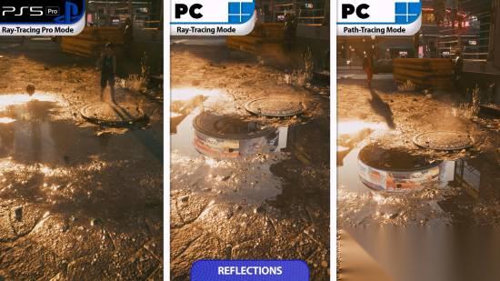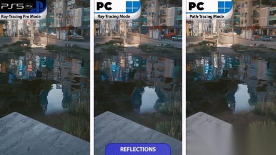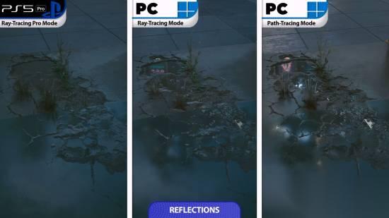 在与PC版本的对比中:阴影与反射:PS5 Pro的光追效果已经非常接近PC高画质设置水准;