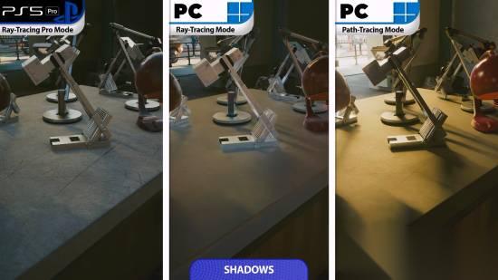 全局光照:PC仍然占优,尤其是在完整光线追踪和路径追踪(Path Tracing)开启后,差距更加明显;