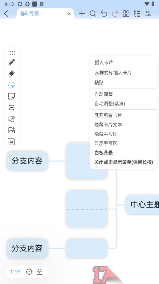 Mindhive思维导图APP是一款专门为用户提供的制作思维导图的应用软件,相信不少用户总是使用这款软件进行思维导图的创建,提供的思维导图模板样式非常多,可以自由的选择使用,而在操作该应用创建思维导图的时候,总是会遇到导图中创建的卡片有些时候会自动变大或者变小的情况,如果想要让当前的卡片内容看起来符合自己的操作需求,那么用户可以开启自动调整功能,启用该功能之后页面上的卡片大小会自动的调整到最为合适的大小,方便用户编辑和查看,除此之外还可以设置隐藏卡片中的文本内容等。