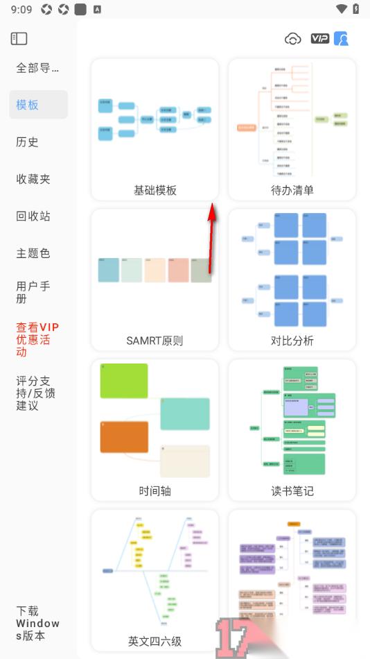 1.在手机上找到Mindhive思维导图APP这款软件点击打开,选择一个自己喜欢的模板样式点击一下即可进入。