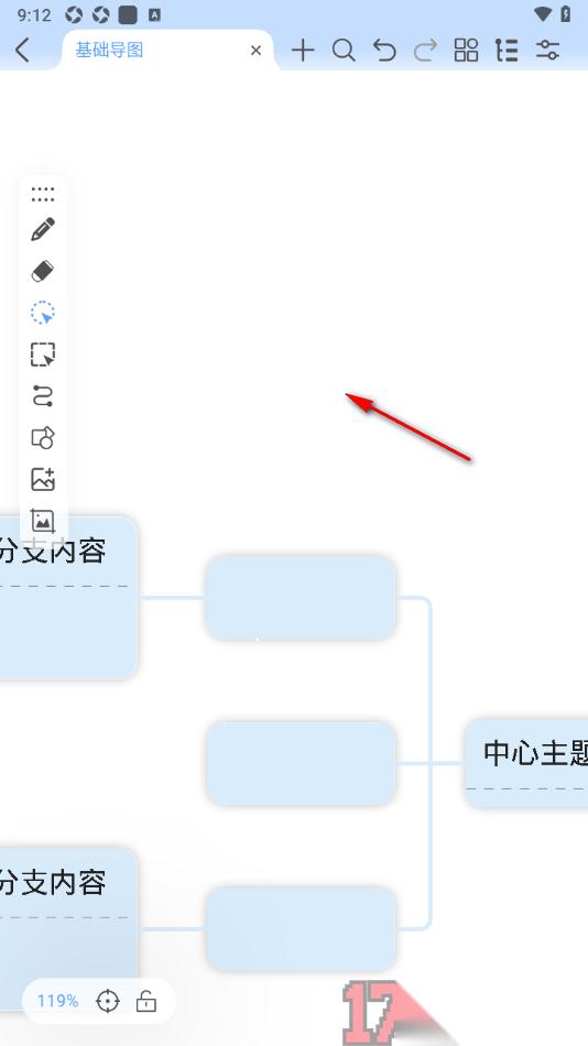 2.当我们进入到页面之后想要将卡片大小自动调整,那么可以点击一下画布的空白位置区域。