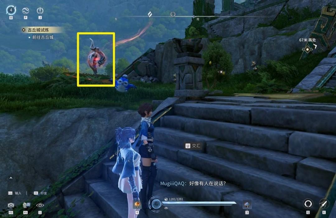 从渡石旁边上台阶,清完小怪后,继续前进,按F牵引至目标位置后,即可触发【BOSS战】元歌傀儡。