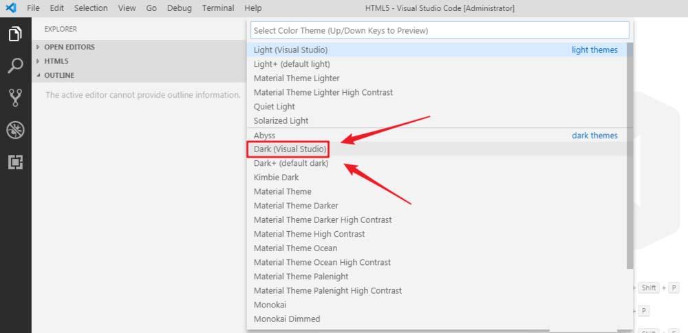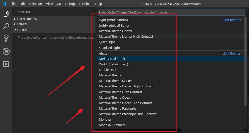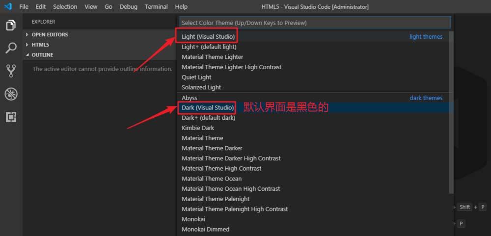 4、默认的界面的黑色的,我们可以看到“dark”就是黑色的意思。如果我们想要更换,选好主题之后,我们点击它,然后就自动更换了。