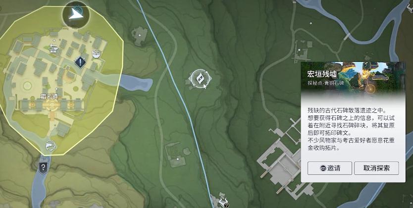 任务探秘点:古丘城西北方向的宏垣残墟探秘点位置。