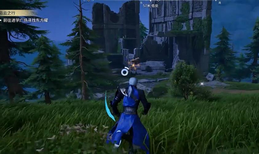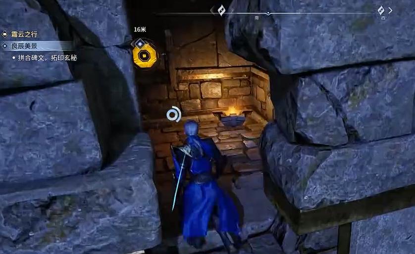 找到任务NPC对话,跟随NPC查看青铜石碑,再次对话触发石碑拼接任务。