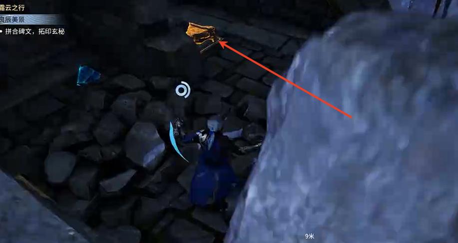 第一块:左侧建筑侧面洞穴内,打破标靶开门获取。