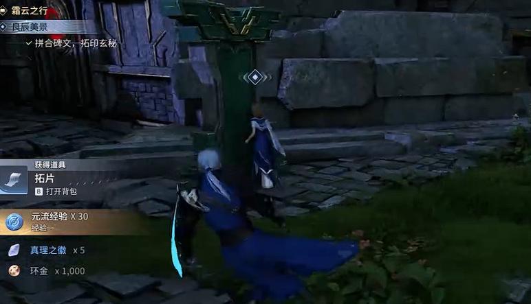将3块碎片全部安装拼接,完成石碑拓印,等待NPC查看后再次对话。