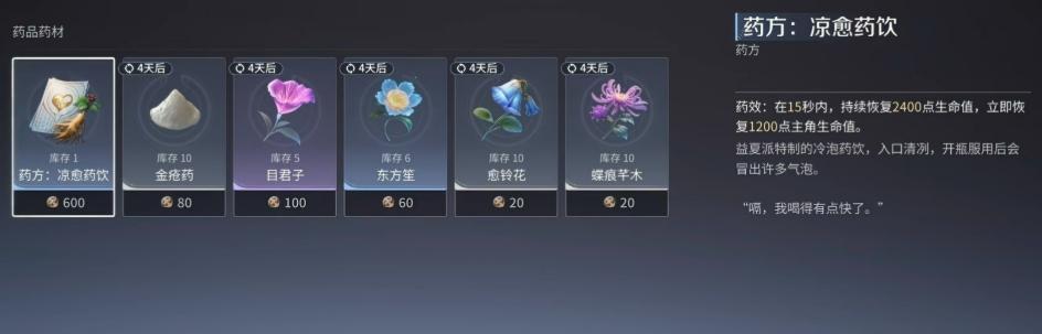 配方获取渠道多元:主线推进过程中随机掉落、限时支线任务奖励、秘境通关宝箱、野外精英怪战利品,以及主城药铺NPC处直接购买。药材采集则高度契合开放世界设计——山坡缓坡、溪流沿岸、瀑布水潭周边均为高频刷新点,玩家在日常跑图、接取悬赏、追踪奇遇时顺手采集即可完成资源积累,无需专程刷图,效率自然提升。