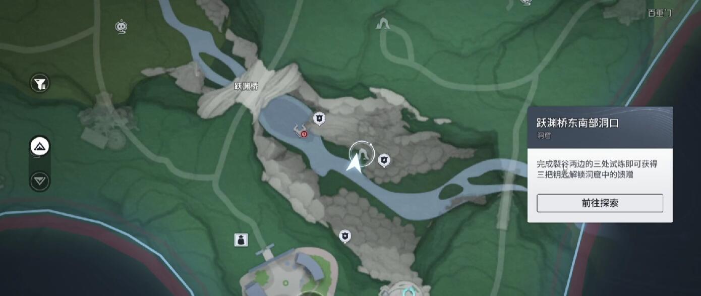 开启挑战的第一步,是抵达跃渊桥东南侧指定区域。该位置在游戏大地图中已有明确标识,玩家可借助传送点快速抵达。到达后可见一处封闭洞口,门禁需由三把钥匙共同激活方可开启。这三把钥匙并非直接掉落,而是分别藏于三处结构各异的试炼场景之中,唯有逐个通关,才能集齐全部钥匙,进而进入洞窟领取金色凝武奖励。