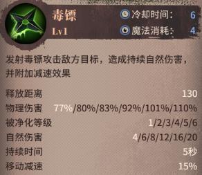 斥候的招牌输出技能是【毒镖】,不仅附带毒和减速效果,在移动时也可以使用,并且比普通攻击远,在任何时候都十分好用。