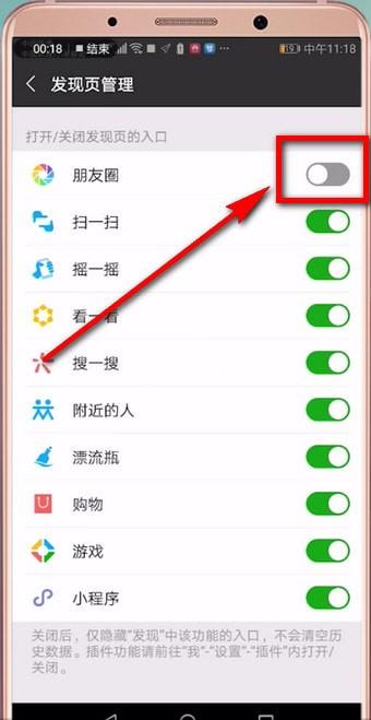 3.最后将【朋友圈】右侧开关打开即可