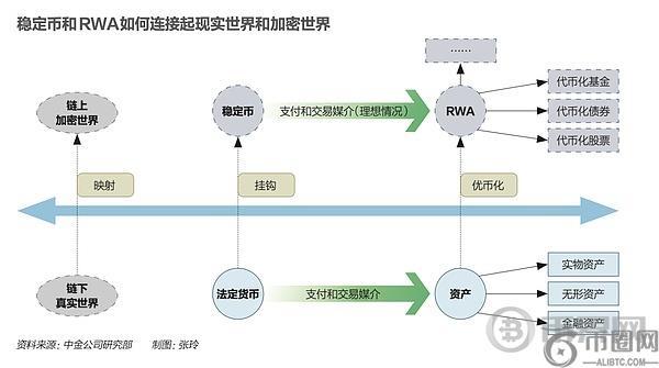 (稳定币和RWA如何连接起现实世界和加密世界,图表:中金公司研究部)