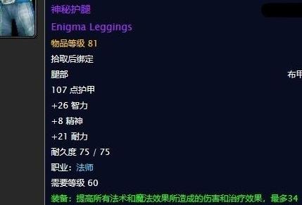 任务奖励:神秘护腿,经验9950XP(满级可获得59银70铜),+250诺兹多姆的子嗣声望
