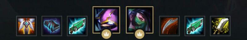 这套阵容的核心就是凯南和9.18刚刚加强的阿卡丽,4忍3法提供的110点恐怖法强相当于两个帽子。凯南配上鬼书和复活甲,让凯南成为能扛能打的战争机器。阿卡丽的龙牙主要是为了防止被AOE打残,暴击刀能提升阿卡丽技能的暴击几率,吸血枪则提升了阿卡丽的残局收割能力。