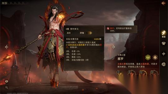 战技贯朽焚元赋予那罗出色的机动性与干扰能力。他可向前突进,对路径上所有敌人造成火焰伤害,并附加禁疗效果,持续5秒。突进过程中命中的近战单位还将短暂失去攻击目标,这在竞技场等需要快速打乱敌方阵型的场合中尤为致命。