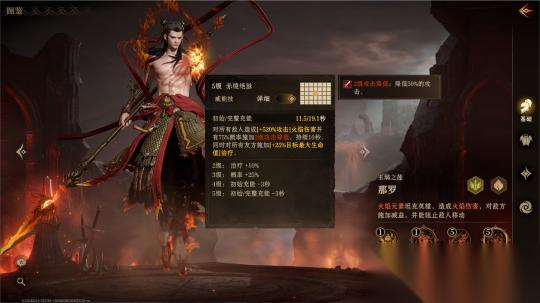 而那罗的威能技赤绫绝脉则真正展现了他作为团队核心的价值。该技能对全体敌人造成火焰伤害,并附加二级攻击降低效果,持续10秒;同时为全体友军提供治疗。更重要的是,此技能可触发被动,使敌方全体陷入无法移动的状态,形成群体压制,兼具削弱、控场与治疗三重效果。