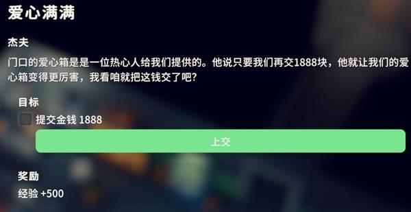 很多玩家不知道这个任务怎么完成,其实我们接取任务之后退出任务页面,再点一下杰夫然后查看这个任务就会出现下面这个交付按钮,这时候我们交付1888金钱就能完成。