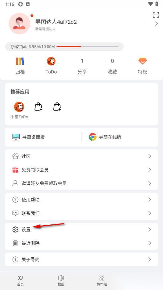 2.再在当前打开的窗口中,找到其中显示的【设置】功能,将其点击一下即可进入。