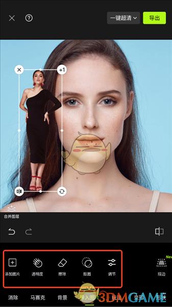 打开Hypic(醒图国际版)APP,导入一张图片作为背景,点击底部“导入图片”选项选择第二张图片,通过双指缩放或拖动调整其大小和位置,确认叠加效果后点击右上角保存即可;若需精细调整,可使用“蒙版”工具擦除多余部分实现自然融合。