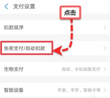 然后在支付设置中选择“自动扣款”项,点击进入。